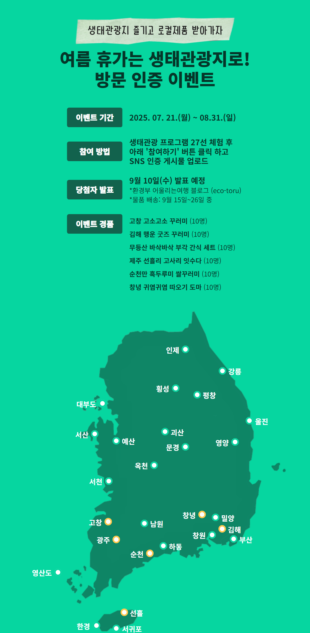 · 문의처 : 환경부 어울리는 생태관광 사무국 02-6956-4103